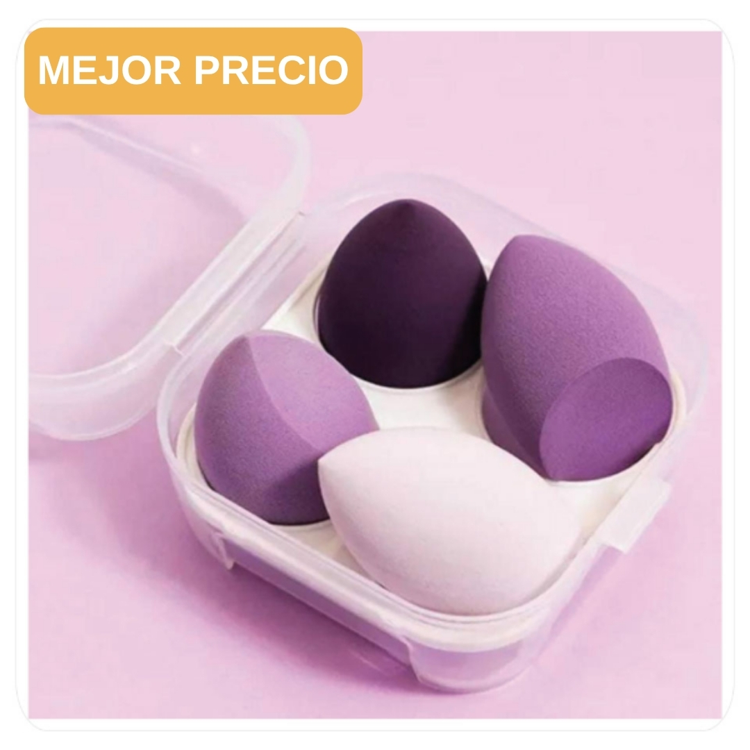 💜 Kit de Esponjas para Maquillaje + Caja de Almacenamiento – 4PCS Color Lila 💜