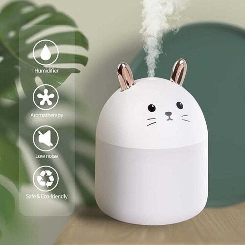 Es una opción popular como humidificador compacto y portátil. Diseño compacto: Su pequeño tamaño lo hace ideal para usar en escritorios, mesitas de noche o incluso en automóviles. Alimentado por USB: Convenientemente alimentado por un cable USB, lo que facilita su uso en cualquier lugar con un puerto USB. Tecnología ultrasónica: utiliza tecnología ultrasónica para producir una fina niebla, lo que garantiza un funcionamiento silencioso. Función de aromaterapia: Puedes añadir unas gotas de tu aceite esencial favorito al depósito de agua para disfrutar de los beneficios de la aromaterapia. Luz nocturna colorida: la luz nocturna LED incorporada crea una atmósfera calmante y relajante.