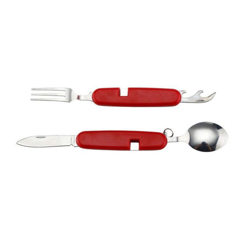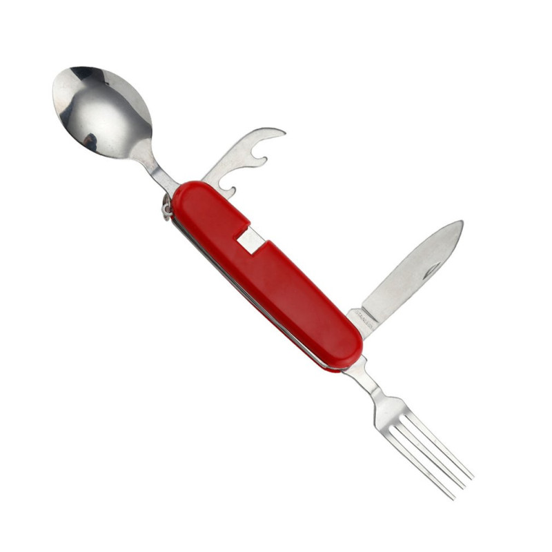 🔪 Navaja multifuncional con cuchillo, cuchara y tenedor, ideal para acampadas y actividades al aire libre