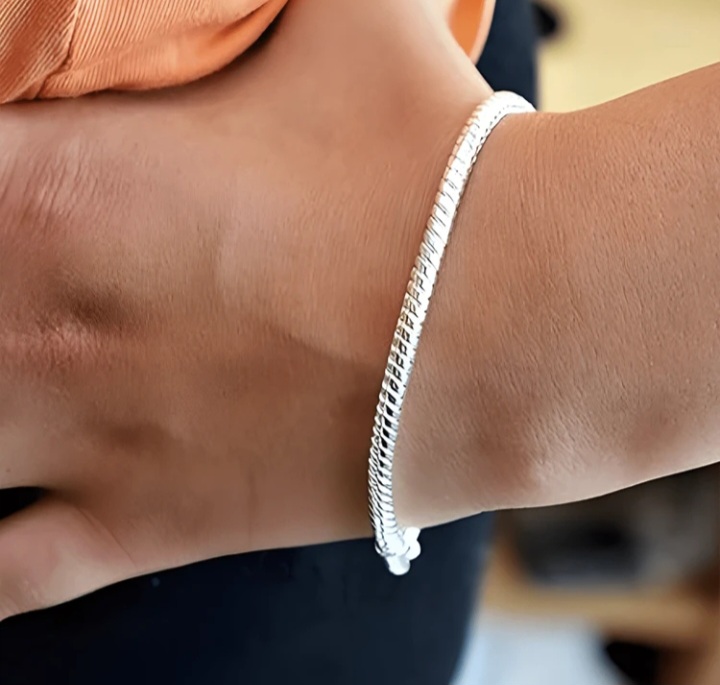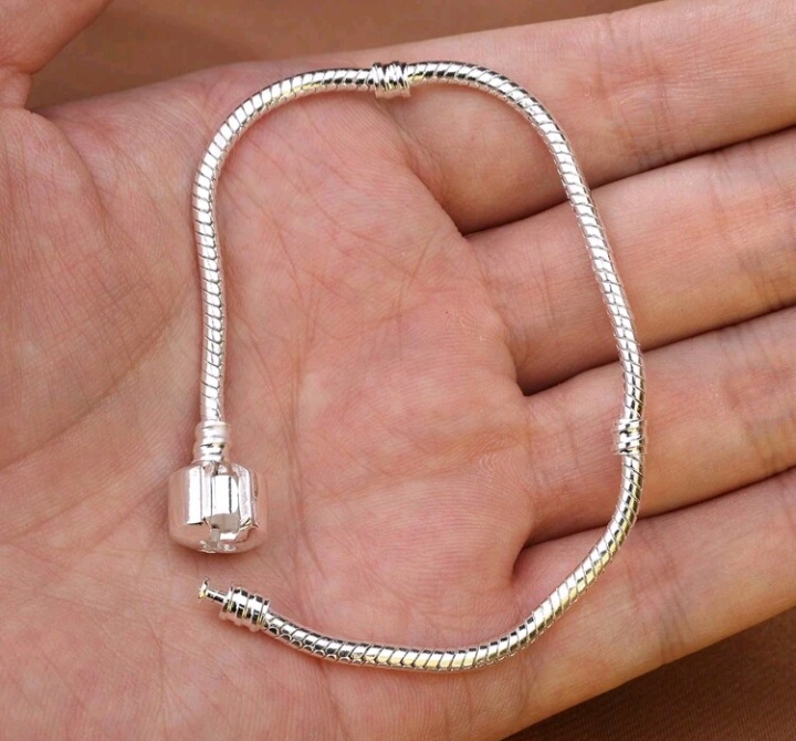Pulsera elegante y minimalista, bañada en plata 925 de excelente calidad, broche tipo tambor, cadena flexible tipo serpiente clásica, 17 cm de largo e inspirada en la marca pandora y compatible con charms de la marca, especial para regalar o regalarte,